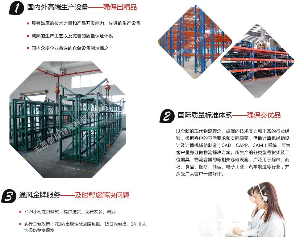 無錫嘉昌倉儲貨架有限公司擁有多年的設計、生產(chǎn)、管理經(jīng)驗。以全新的現(xiàn)代物流理念、雄厚的技術(shù)實力和豐富的行業(yè)經(jīng)驗,根據(jù)客戶的不同要求和實際需要,借助計算機輔助設計及計算機輔助制造(CAD、CAPP、CAM)系統(tǒng),可為客戶量身訂做物流解決方案。所生產(chǎn)的各類型號貨架及工位器具、物流容器的等相關倉儲設施,廣泛用于超市、商場、食品、醫(yī)療、儲運、電子工業(yè)、汽車制造等行業(yè),并深受廣大客戶一致好評。